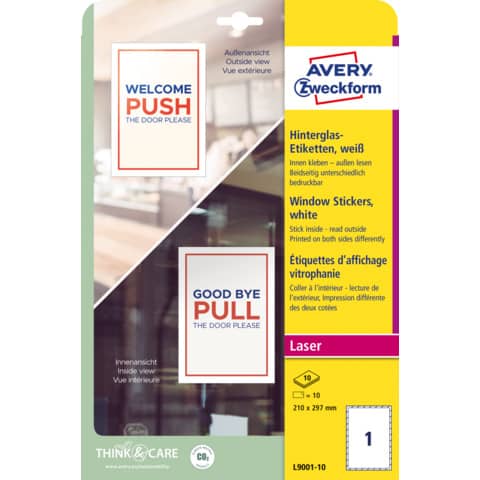 Adesivi per finestre Avery in carta con pellicola plastificatrice in conf. da 10 pz 210×297 mm – L9001-10