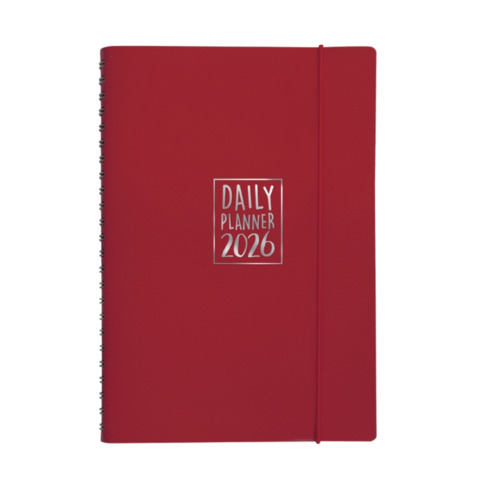 Agenda giornaliera Biembi 2026 rosso magenta spiralata con copertina in cuoio rigenerato 15x21cm – BNZ265C72-R