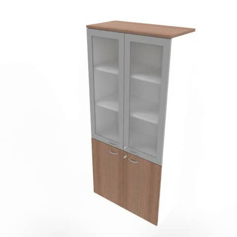 Armadio alto ante basse noce canaletto e alte in vetro telaio MDF scocca bianca 90x45xH.200 cm – ECE490T-NO-BA-V3