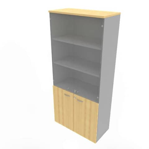 Armadio alto con ante basse faggio e alte in vetro scocca argento 90x45xH.200 cm Practika – ECE490V-FA-AA-GE