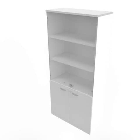 Armadio alto con ante basse grigio e alte in vetro scocca bianca 90x45xH.200 cm Practika – ECE490V-GR-BA-GE