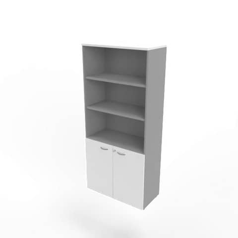 Armadio alto con ante basse grigio scocca bianca 90x45xH.200 cm linea Practika Quadrifoglio – ECEB90S-GR-BA-GR