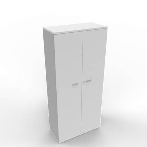 Armadio super con ante battenti e scocca in pannello di conglomerato ligneo spessore 18 mm, rivestito su entrambi i lati con pannello melaminico antiriflesso, antigraffio e lavabile. Fianchi e fondo spessore 18 mm con bordatura sui 4 lati in tinta. Schienale spessore 8 mm. Ripiani spessore 25 mm con bordatura 4 lati in tinta e reggipiani a scomparsa spostabili in altezza ogni 32 mm. Coperchio spessore 25 mm con bordatura 3 lati in vista in ABS antiurto, in tinta, spessore 2 mm. N. 5 piedini livellatori in ABS regolabili in altezza dall'interno del mobile. Ante battenti in pannello di conglomerato ligneo spessore 18 mm rivestito con melaminico antiriflesso, antigraffio e lavabile, bordato sui 4 lati in ABS antiurto in tinta spessore 1,5 mm. Cerniere in metallo con apertura a 105°. Serratura con chiave pieghevole antinfortunistica. Scocca grigio argento. Finiture grigio. Dimensione: 90x45xH.200 cm. Quadrifoglio Sistemi d'Arredo presta particolare attenzione alle tematiche della qualità, dell?ambiente e della sicurezza per fornire un prodotto e un servizio all?altezza delle aspettative del mercato. L?azienda ha raggiunto le certificazioni UNI EN ISO 9001/2015, UNI EN ISO 14001/2015 e UNI EN ISO 45001/2018. Nel rispetto e nella tutela dell?ambiente, i prodotti Quadrifoglio sono certificati e garantiti da FSC? e PANNELLO ECOLOGICO.