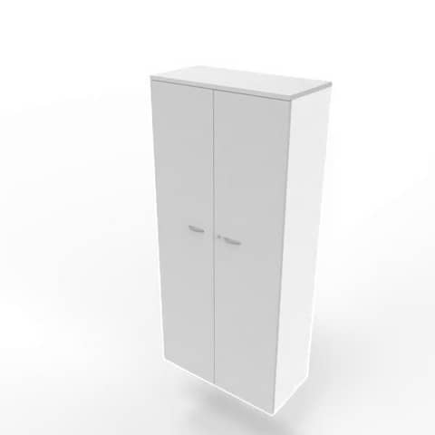 Armadio super con ante battenti e scocca in pannello di conglomerato ligneo spessore 18 mm, rivestito su entrambi i lati con pannello melaminico antiriflesso, antigraffio e lavabile. Fianchi e fondo spessore 18 mm con bordatura sui 4 lati in tinta. Schienale spessore 8 mm. Ripiani spessore 25 mm con bordatura 4 lati in tinta e reggipiani a scomparsa spostabili in altezza ogni 32 mm. Coperchio spessore 25 mm con bordatura 3 lati in vista in ABS antiurto, in tinta, spessore 2 mm. N. 5 piedini livellatori in ABS regolabili in altezza dall'interno del mobile. Ante battenti in pannello di conglomerato ligneo spessore 18 mm rivestito con melaminico antiriflesso, antigraffio e lavabile, bordato sui 4 lati in ABS antiurto in tinta spessore 1,5 mm. Cerniere in metallo con apertura a 105°. Serratura con chiave pieghevole antinfortunistica. Scocca bianca. Finiture grigio. Dimensione: 90x45xH.200 cm. Quadrifoglio Sistemi d'Arredo presta particolare attenzione alle tematiche della qualità, dell?ambiente e della sicurezza per fornire un prodotto e un servizio all?altezza delle aspettative del mercato. L?azienda ha raggiunto le certificazioni UNI EN ISO 9001/2015, UNI EN ISO 14001/2015 e UNI EN ISO 45001/2018. Nel rispetto e nella tutela dell?ambiente, i prodotti Quadrifoglio sono certificati e garantiti da FSC? e PANNELLO ECOLOGICO.