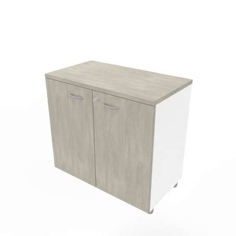 Armadio basso altezza scrivania ante cemento scocca bianca 80x45xH.73 cm Practika Quadrifoglio – ECEB80B-CL-BA-CL