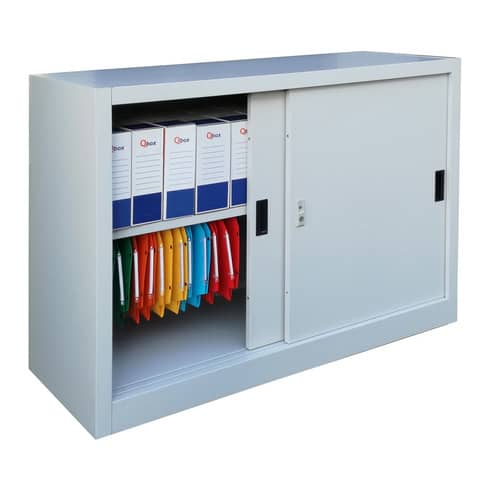 Armadio basso metallico KUBO ante scorrevoli 1 vano/ 1 ripiano 120x45x90 cm grigio – SB 120