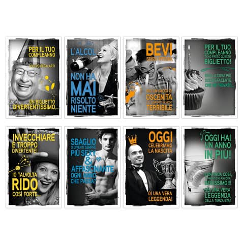 Biglietti augurali Biembi Compleanno 12×18 cm conf. 8 pezzi assortiti – Humor BXBDKTC07