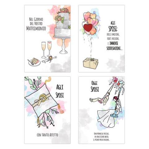 Biglietti augurali da cerimonia. Ideali per celebrare il matrimonio. Formato 12x18 cm. Fustellati oro. Confezione da 4 pezzi assortiti.