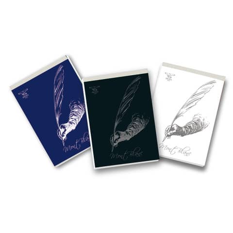 Blocchi punto metallico Pigna Mont Blanc da 70 fogli. Formato: 8x12 cm. Grammatura: 60 g/mq. Rigatura: quadretti 5M. Colore copertina: assortiti.