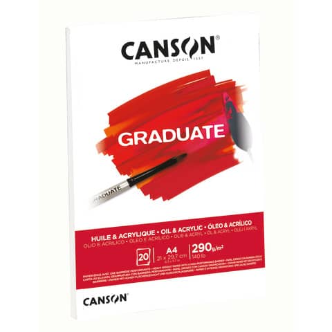 Blocco collato sul lato corto con carta di colore bianco naturale con effetto tela da 290 g/m2. Elevata assorbenza e resistenza. Per tecniche pure a olio e acrilico. Formato A4. Blocco da 10 fogli