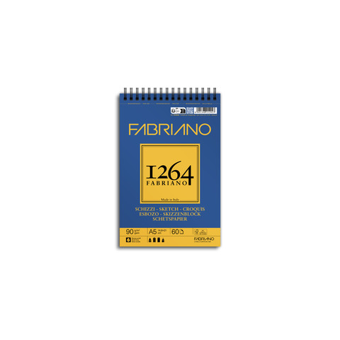 Blocco spiralato Fabriano 1264 schizzi 90 g 60 fogli A5 – spirale lato corto – 19100636
