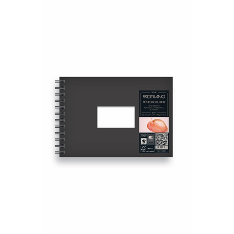 Blocco per acquarello Watercolour, carta grana fine AcidFree, certificata FSC e proveniente da foreste gestite secondo rigorosi standard ambientali, sociali ed economici. Prodotta con il 25% di cotone, collata sia in massa che in superficie per assicurare la massima prestazione per l'acquarello e ogni tipo di tecnica desiderata. Copertina nera rigida e lavabile. Fustella rettangolare presente sulla copertina permette la personalizzazione del libro disegnando il primo foglio in corrispondenza della fustella stessa. Grammatura 300 g, 25 fogli per blocco. Formato 14,8x21 cm.