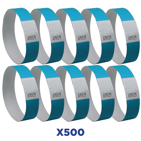 Braccialetti identificativi realizzati inTyvek®, materiale composto da fibre di polietilene ad altà densità (HDPE). Perfetti per eventi pubblici e sportivi. Il materiale resistente, morbido e antistrappo li rende un accessorio indispensabile per identificare i partecipanti agli eventi. Resistono all'acqua e agli strappi. Sistema di chiusura adesivo adattabile a tutte le taglie di polso. Disponibili in diversi colori per diversificare i partecipanti agli eventi. Colore blu fluo. Confezione composta da 500 pezzi.
