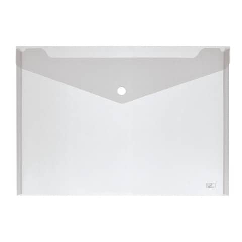 Busta trasparente in PP con chiusura a bottone. Confezione composta da 12 buste trasparenti, formato A4, apertura orizzontale.