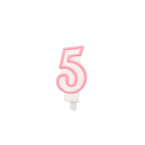 Candelina Party Go bianco e rosa H.6 cm n° 5 EA0199