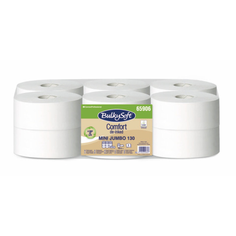Carta igienica Bulkysoft Comfort Mini Jumbo 130 mt de-inked bianca conf. 12 pz 2 veli – 65906