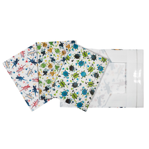 Cartella a 3 lembi Icon Sea con elastico tondo, formato A4 (33 x 23,7 cm). Tre soggetti assortiti.
