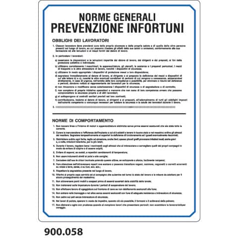 Attributi: Specifiche articolo: 33x47 cm PBS-Attributo variante: ''Norme generali prevenzione infortuni'' Altezza: 47 Descrizione prodotto: ''Norme