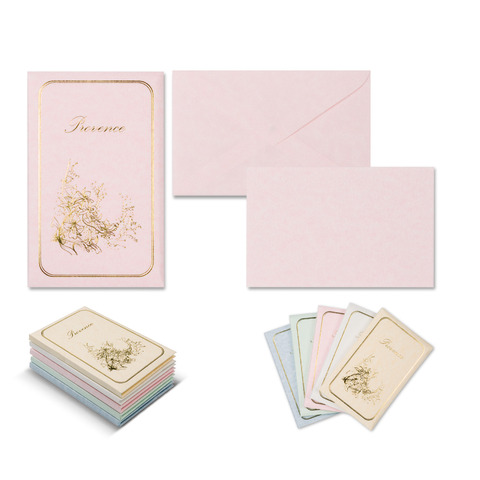 Cartoncino augurale con busta coordinata nel modello Provence: delicati colori pastello con bordatura e fantasia floreale dorate. Ideali per mandare un messaggio o un augurio con stile. Assortiti nelle seguenti colorazioni: rosa, azzurro, verde, crema e grigio. Taschetta da 10 cartoncini + 10 buste.