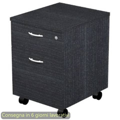 Cassettiera della linea Presto, una linea operativa contemporanea progettata per un utilizzo quotidiano ed intensivo in grado di soddisfare tutte le esigenze funzionali ed estetiche. La gamma completa degli elementi permette di allestire ogni ambiente di lavoro, personalizzandolo con stile. Scrivanie con dimensioni conformi alle normative sulla sicurezza dei posti di lavoro in ufficio. Dimensioni L. 41,8 x P. 52 x H. 59,5 cm. Cassettiera composta da un cassetto con serratura e un classificatore per cartelle sospese con interasse 33 cm. Cassetto e classificatori scorrevoli su guide metalliche con fermo a fine corsa. Dotata di ruote pivotanti e meccanismo antiribaltamento. Imballi in cartone riciclato alto spessore a tutela dell?ambiente. Produzione certificata conforme alle procedure UNI EN ISO 9001. Certificazioni FSC e PEFC. Prodotto venduto montato. Colore nero venato frassino. Con ruote, senza freno.