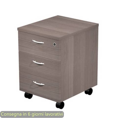 Cassettiera a 3 cassetti della serie Presto, una linea economica ma caratterizzata da soluzioni tecniche di livello superiore. Cassetti scorrevoli su guide metalliche con fermo a fine corsa, di cui il primo fornito anche di serratura. Con ruote pivotanti, smontate e senza freno.