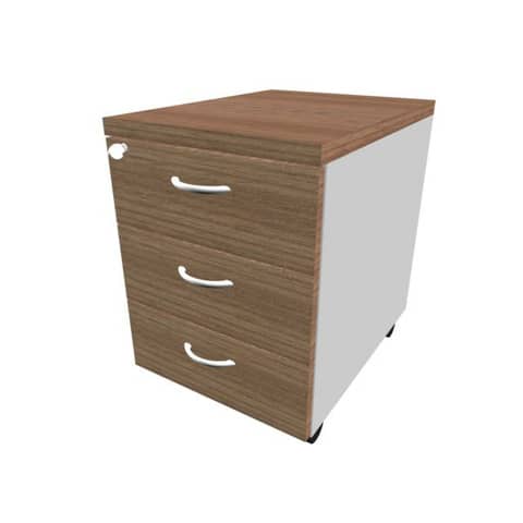 Cassettiera noce canaletto 3 cassetti 42x56x58 cm con ruote e serratura linea Practika Quadrifoglio PKCA0003-NO-AA