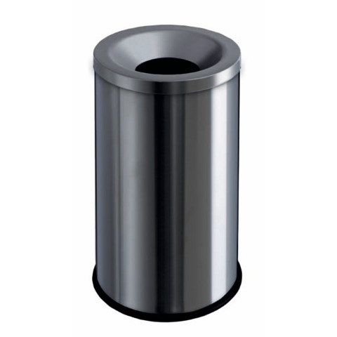 Cestino auto-estinguente Grisù 50lt. In acciaio inox satinato. Testa soffocante per bloccare la propagazione del fuoco. Base in gomma antigraffio. Certificato dal CNPP. Dimensioni: 340x585 mm. Diametro: 140 mm.