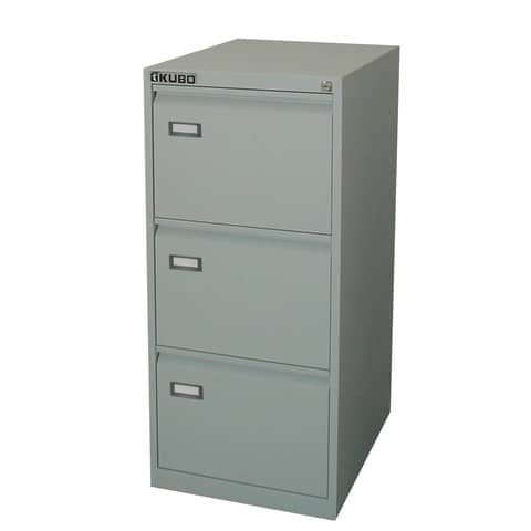 Classificatore in metallo KUBO di spessore 0,9 mm. (struttura) e 0,7 mm. (cassetti). Robusto e sicuro, con maniglia ergonomica e sistema antiribaltamento che impedisce l'apertura simultanea di più cassetti. Modello a 3 cassetti - colore grigio. Portata max. di ciascun cassetto 30 Kg; sistema di chiusura centralizzato con 2 chiavi in dotazione e porta etichette in plastica posizionato su ogni cassetto. Dotati di guide telescopiche ad estrazione totale, i cassetti scorrono con estrema facilità e silenziosità. Cassetti adatti a contenere cartelle sospese con interasse 38 cm., 39 cm e 33 cm (tramite barra supplementare inclusa). Verniciatura con polveri epossidiche. Rispondono alle norme europee di sicurezza e sono dotati di marchio TÜV - GS. Garanzia 5 anni per vizi di fabbricazione (cassetti testati per 80.000 cicli di apertura/chiusura). Consegnati montati con imballo molto resistente su singoli pallet.