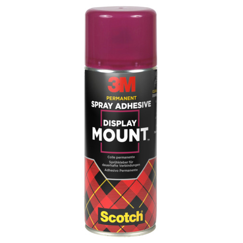 Scotch® DisplayMount? è un adesivo multiuso e dalla massima resistenza per il fissaggio e l'incollaggio permanenti. Appositamente progettato per le scenografie di mostre, studi e set teatrali, lavori da esposizione e molte altre applicazioni in cui è necessario un adesivo per impieghi gravosi. Ideale per incollare prototipi, scenografie teatrali, carte patinate, pannelli espositivi. Utilizzabile per il fissaggio di materiali porosi e non porosi, tra cui molti tipi di plastica, stoffa, lamina in metallo, carta, cartone, tappezzeria e gomma La nuova applicazione spray controllata riduce notevolmente la nebulizzazione dell'adesivo. Adesivo ad alta resistenza per il fissaggio e l'incollaggio permanenti.