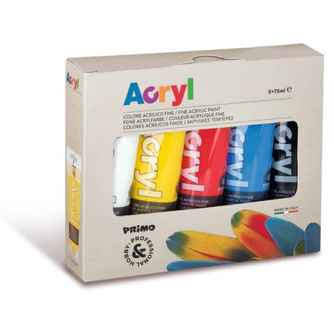 Colore acrilico fine Primo H&P 75 ml – Conf. 5 tubetti colori primari assortiti 421TATM5