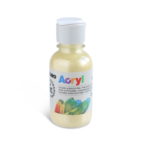 Colore acrilico fine in bottiglia in PET da 125 ml, con tappo dosatore. È un colore ad acqua ad alta concentrazione di pigmento ed emulsione acrilica, di alta qualità, opaco e molto coprente che una volta asciutto è permanente. Si stende facilmente e asciuga in bella superficie rimanendo elastico, di tono vivo e luminoso, piacevole al tatto e resistente. È utilizzabile su qualsiasi substrato, si presta bene alle attività pittoriche proprie di questa tecnica versatile e ricca di possibilità creative. È adatto a tecniche decorative e hobbistiche quali il découpage. È applicabile sulle pareti mediante stencils. I risultati sono di ottimo effetto e durata. Le tinte disponibili in gamma utilizzate pure offrono colori intensi e d?effetto. Colore oro.