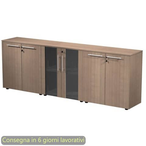 Composizione tre armadi bassi 2 ante vetro 242,8x43xH.81,4 cm Flora Artexport ciliegio arabis