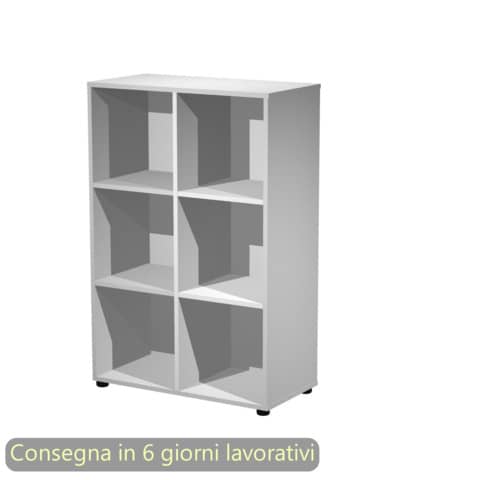 Contenitore 6 caselle a giorno grigio. Dimensioni: 80x40xH.121,6 cm. Top spessore: 18 mm. Fianchi, ripiani e base spessore: 18 mm . Dietro spessore: 10 mm. Ante spessore: 18 mm .Materiale bilaminato nobilitato melaminico spessore conforme norme UNI e EN classe E1, antigraffio ed antiriflesso. Programma di contenitori a 6 caselle allestibili a giorno oppure con ante complete di serratura. Ideali sia per l?archiviazione di documenti che in tutti quei contesti in cui è opportuno offrire la possibilità di lasciare oggetti personali custoditi all?interno di un vano chiuso a chiave. Il design delle ante permette, anche da chiuse, di inserire documenti all?interno della casella. Utilizzabile anche come casellario. Le singole caselle misurano 372x372 mm (L x H) e complete di ante hanno una profondità utile di 366 mm. Dotate di piedini livellabili in altezza. Disponibile nelle seguenti colorazioni. Struttura: 3-bianco e grigio alluminio. Ante: bianco, rovere, grigio alluminio, rosso, verde e viola scarlatto.