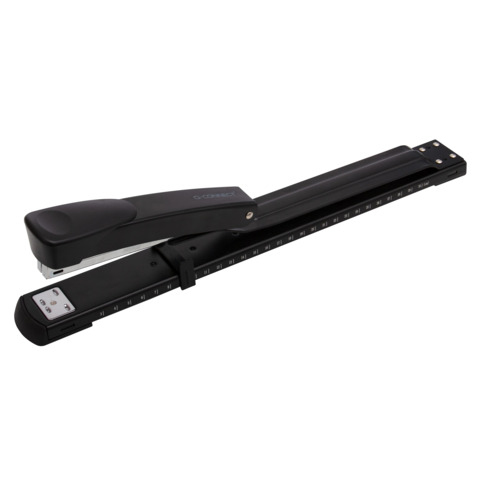 Cucitrice a braccio lungo. Profondità di cucitura 31,7 cm. Capacità di cucitura 20 fogli. Per punti 24/6 e 26/6. Colore nero.