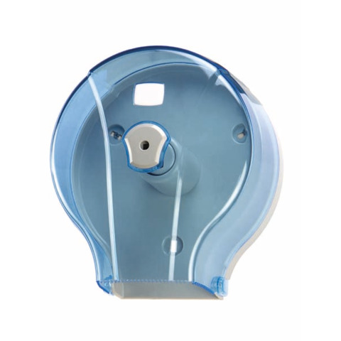 Distributore di carta igienica in rotolo Medial Wave ². Base in ABS grigio e cover in SAN blu trasparente. Rotolo carta igienica da 200 mt (max Ø 190 mm); mandrino con diametro standard da 40 mm; adattatore per mandrino, con diametro 55 mm; lame su tre lati per facilitare il taglio della carta. Finestra per il controllo del livello della carta; serratura in plastica; design ricercato; kit d'installazione incluso (viteria e tasselli). Dimensioni: 240 x 130 x 260 mm.