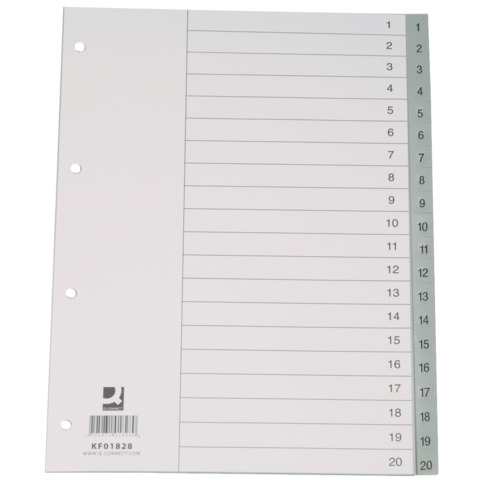 Divisore numerico Q-Connect grigio 22,5×29,7 cm ppl 1-20 KF01828