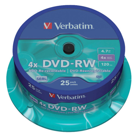 DVD-RW Verbatim 4.7 GB 4x Spindle Case in confezione da 25 dvd-rw – 43639