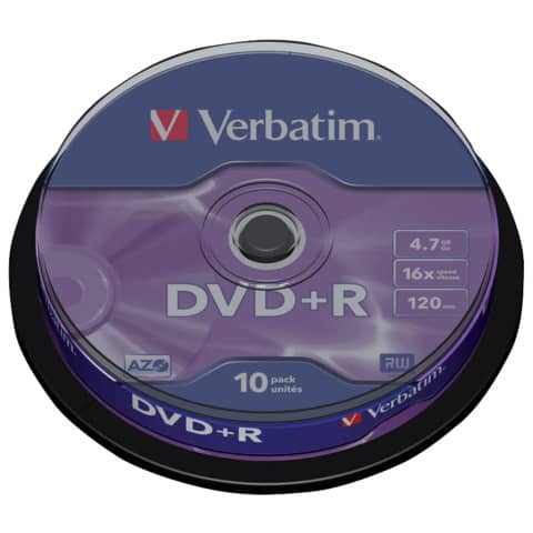 DVD+R Verbatim 16x 4.7 GB Spindle Case da 10 dvd-r – 43498