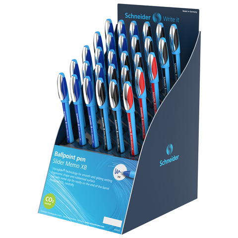 Espositore 30 penne a sfera Schneider Slider Memo tratto XB 3 colori assortiti P399417