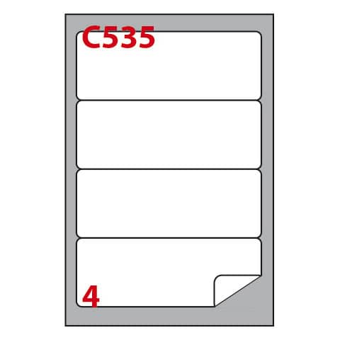 Etichette bianche Copiatabu C535 laser/inkjet – angoli arrotondati – 4 et./foglio – cf. 100 ff Markin 190×61 mm
