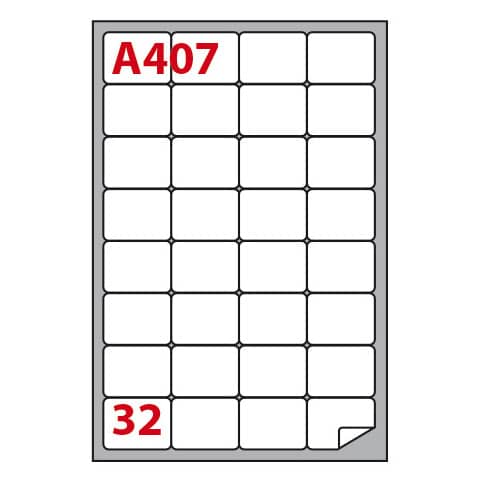 Etichette bianche permanenti Copiatabu A407 47×35 mm – angoli arrotondati – 32 et./foglio – conf. 100 fogli Markin