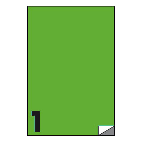 Etichette fluo permanenti Markin Copiatabu 210×297 mm in foglio A4 – 1 et./foglio – verde – conf. 100 fogli