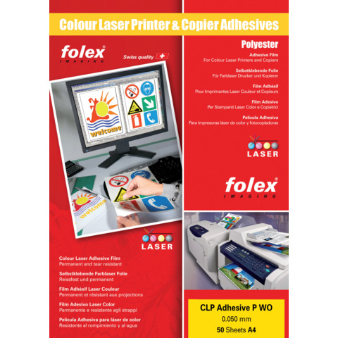 Film adesivo per stampanti laser e copiatrici Folex CLP Adhesive P WO 0,05 mm A4 lucido Cf. 50 – 2999W.050.44100