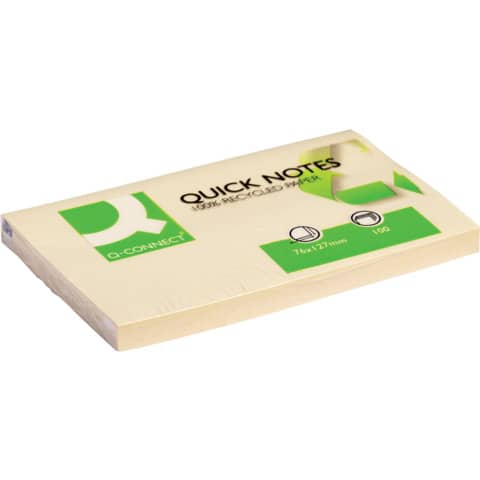 Foglietti riposizionabili Q-Connect 100% materiale riciclato 65 g/m² giallo 76x127mm 12 blocc. da 100 ff – KF05610