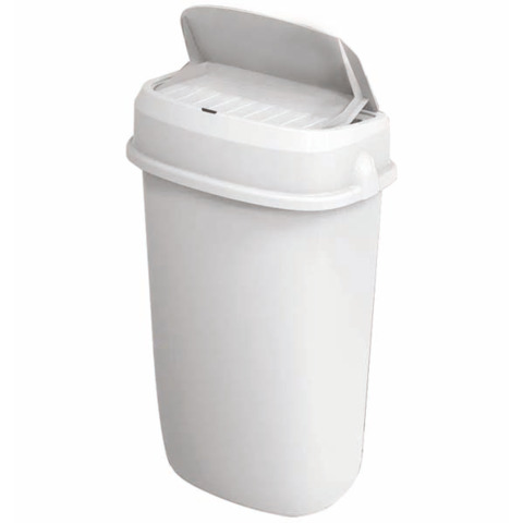 Gettacarte con coperchio ad imbocco automatico Medial Amélie. Corpo e coperchio in PP / ABS bianco. Sensore smart: senza contatto, più igienico; sensori apertura a infrarossi e a vibrazione; generatore di ozono integrato (efficacia del 99,9%). Alimentazione: 4 pile tipo ?AA? (non incluse); anello reggisacco incluso. Dimensioni consigliate sacco: 50x60cm. Grado di protezione IPX4; d?appoggio o murale (kit incluso). Dimensioni: 336 x 194 x 536 mm.