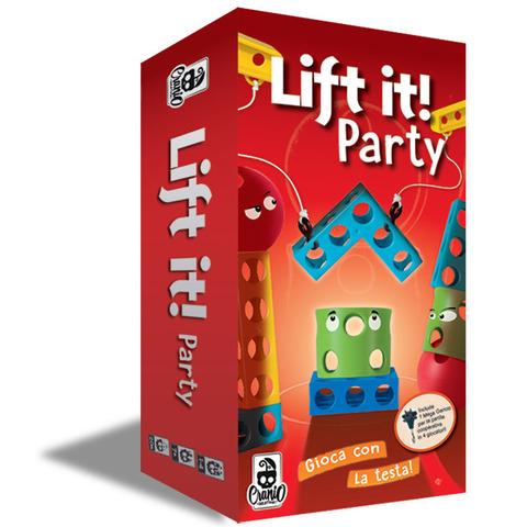 Lift It! Party è una nuova e più compatta edizione di Lift It!: gioco di velocità, destrezza e colpo d'occhio. Potete giocarlo singolarmente o in squadra, ma ogni partita sarà comunque una sfida che metterà a dura prova le vostre abilità di architetti. Muovete al meglio la gru che pende dalla vostra fronte (avete capito bene!) e realizzate le costruzioni prima dei vostri avversari! Ideale da 1 a 4 giocatori, età di utilizzo 7+.