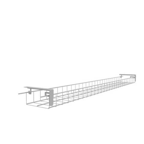 Griglia raccoglicavi per scrivanie Practika con staffe per il fissaggio sottopiano. Colore argento. Dimensioni 150,3x15,5x6,5 cm.