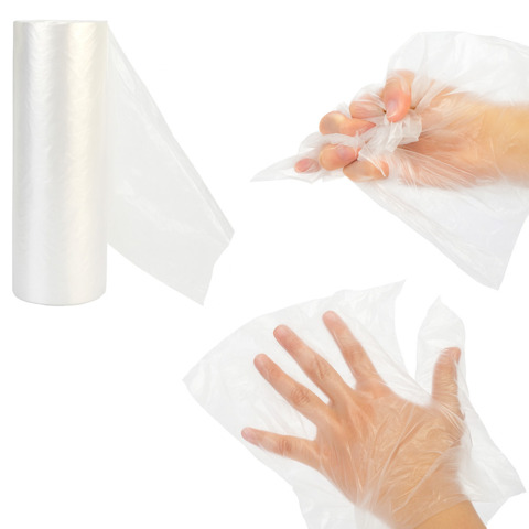 Guanti palmati trasparenti monouso. Sono a taglia unica, ideali per l'uso in luoghi pubblici, quali: supermercati oppure stazioni di servizio. Disponibili in rotolo da 200 guanti. Confezione composta da 25 rotoli.