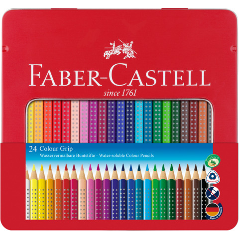 Astuccio con 24 matite colorate acquerellabili Colour Grip con sezione ergonomica triangolare. Zona Grip con pallini antiscivolo per una presa sicura tra le dita del bambino. Diametro mina: 3.3 mm. Atossiche: verniciate con vernice ecologica a base d?acqua. Spazio sul fusto per scrivere il nome. Nessuna matita verrà più persa! High Performance: massima resistenza della mina alla rottura. Certificate da FSC - Forest Stewardship Council.