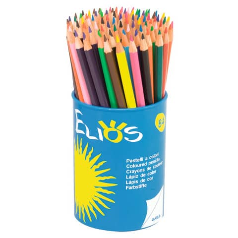 Matite colorate ELIOS in barattolo. Brillanti come il sole. Creare in libertà ha i colori dell'arcobaleno con il pratico Elios! Pastello esagonale verniciato del colore della mina del diametro di 2,8 mm, Elios è facilissimo da temperare. Confezione: 84 colori. Colore: assortiti.